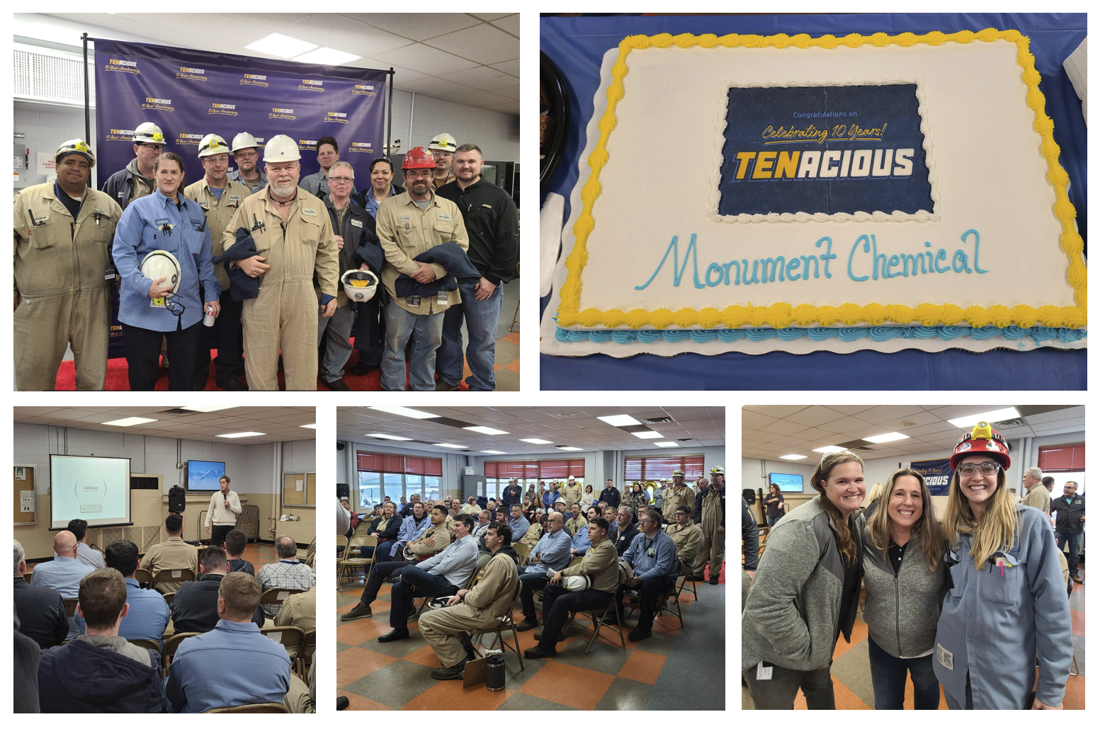 Paul Raymond, CEO of Monument Chemical, and Adam Pingel, VPO of Global Operations, were both in attendance to help celebrate. And after the viewing of Brandenburg’s 10th Anniversary Video, Adam gave a phenomenal speech sharing memories from his own experiences as a site leader at Brandenburg, which had everyone laughing, reminiscing, and feeling even more excited for what the next chapter holds.