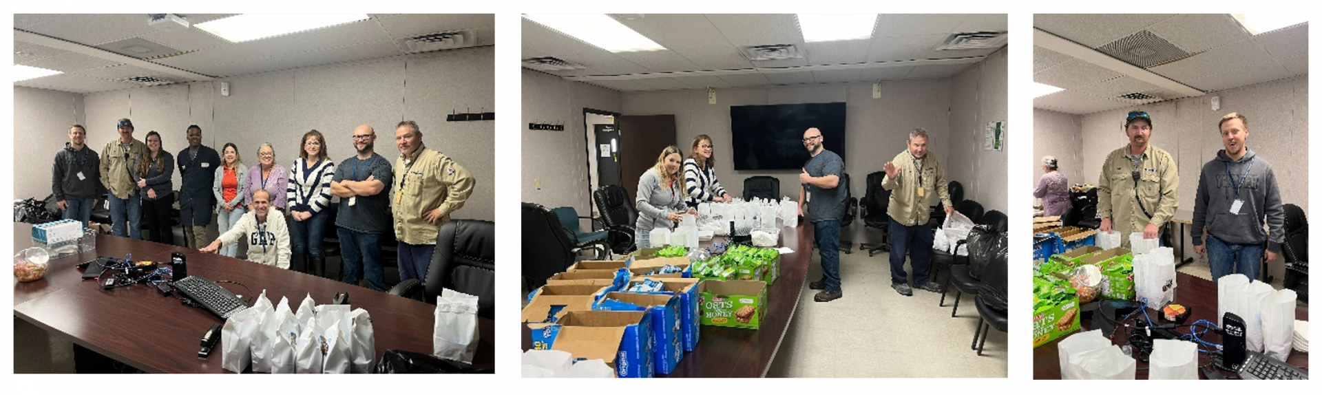 11 Bayport employees partnered with Bay Area Assistance League to assemble 350 snack kits for Texas City ISD students. Each kit contained a juice, microwaveable spaghetti meal, fruit gummies, Rice Krispies treat, granola bar, and utensils. Teachers distributed the snack kits to students who needed snacks over the Thanksgiving holiday.