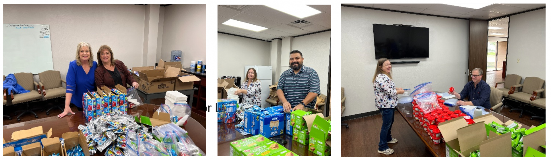 Baytown assembled 200 snack kits for LaPorte ISD.