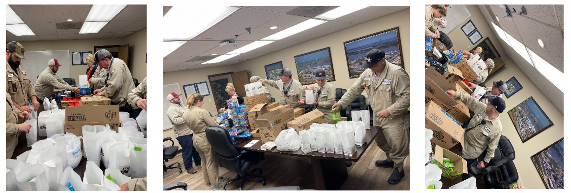 Another team of Houston employees assembled 300 snack kits for the Deer Park school district. These snacks were sent home with children over Thanksgiving break.