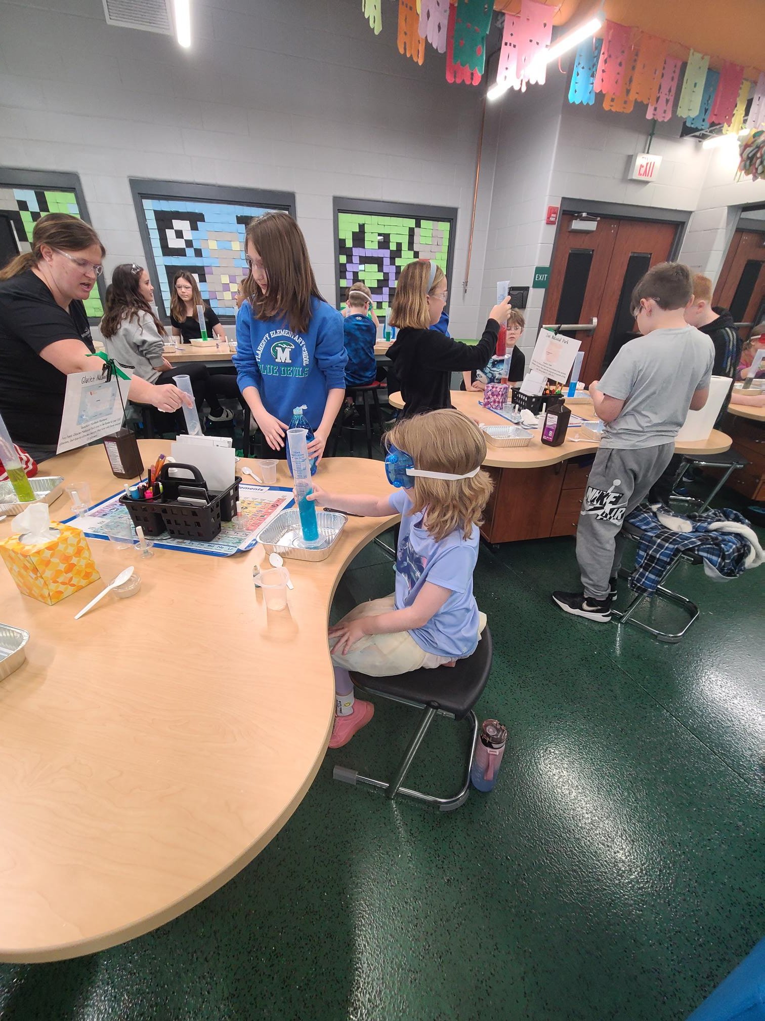 Led by Process Engineer Lead Allie Greenwood, the team designed a new lineup of interactive demonstrations to build on last year’s chemical reactions theme. The four new experiments — elephant toothpaste, chalk chromatography, oobleck, and balloon helicopters — offered a diverse mix of science, chemistry, and physics, tailored to returning students.
