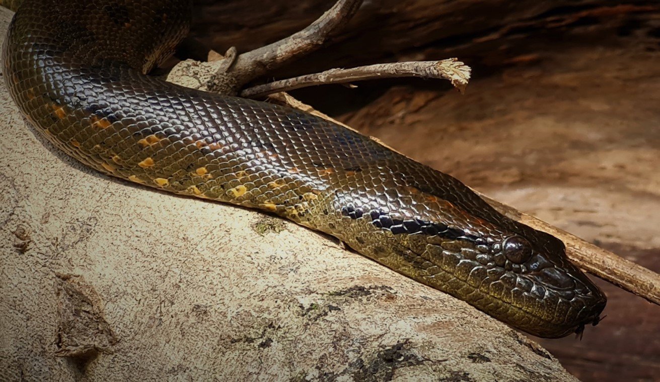When Dennis isn’t pointing his camera at the cosmos, he’s focusing on nature, including (above) a glass frog and (below) a sleeping anaconda — both photographed in Ecuador at night.