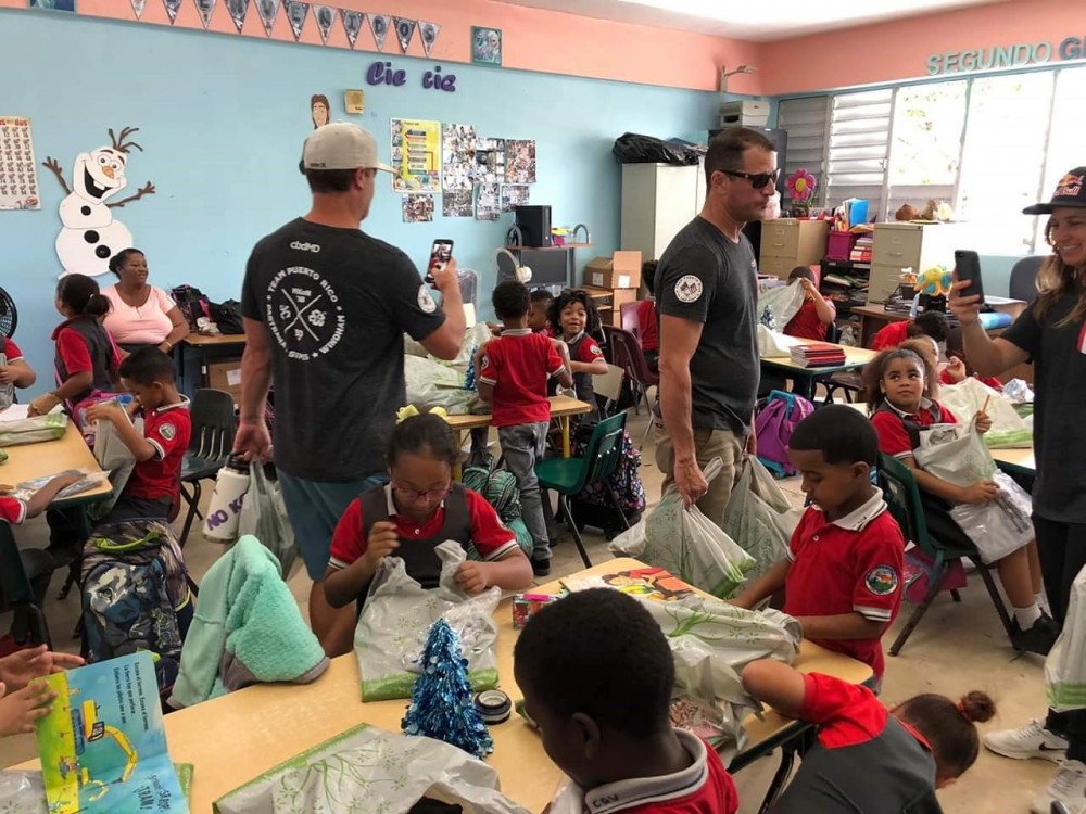“My favorite memories are the times we spent at one of the local elementary schools,” said Ryan. “The school was over-crowded, because they were supporting children from other schools that had been damaged – but the kids’ attitudes were still sunny and optimistic. We bought a range of needed supplies, from computers to sports equipment to pizza. Travis Pastrana even built a small ramp in the schoolyard and did a backflip on a motorcycle for his star-struck audience.”